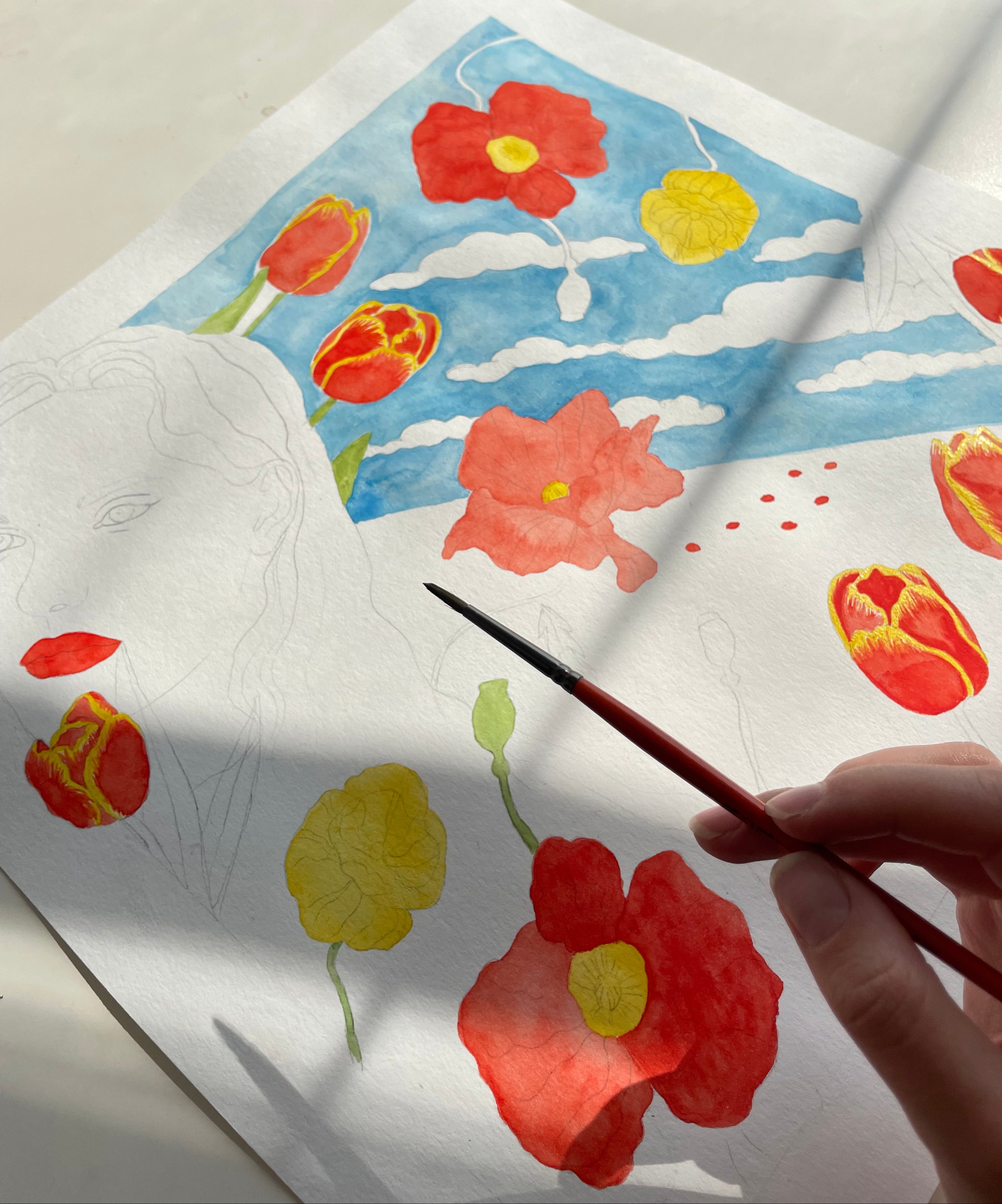 Inspired by poppy flowers, this soft & silky headscarf fulfills all of your cottage core dreams. Fold it in 4 different ways – get a new look with each.